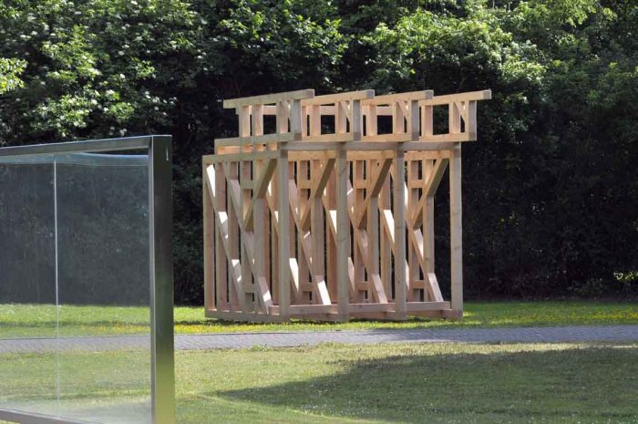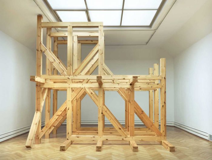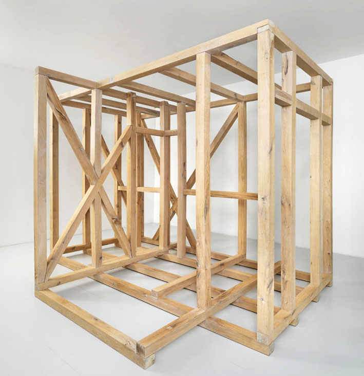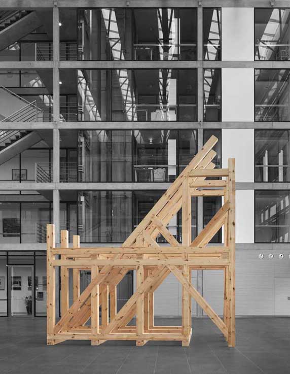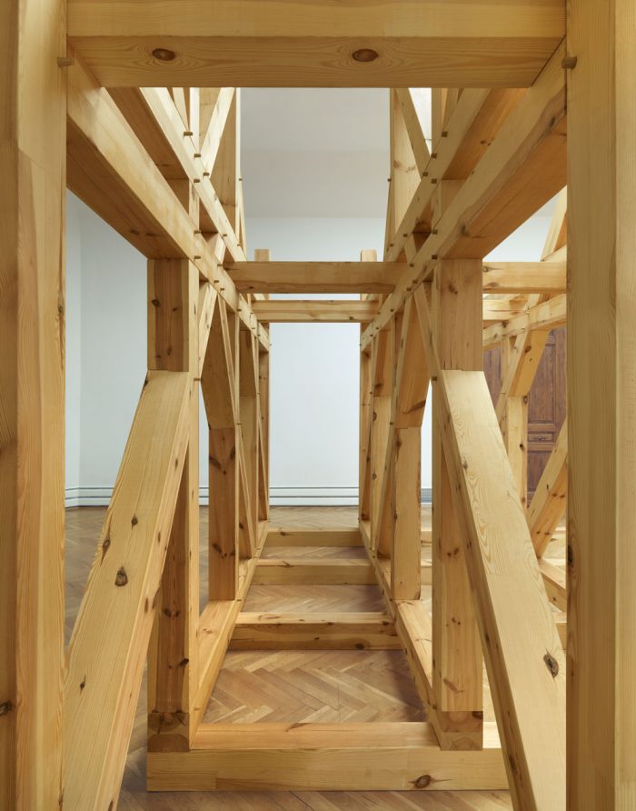 3 Häuser, 2022, Fraunhofer IBPTrassen (in der Karlsaue), 2017, Douglasie (lackiert)Drei Häuser, 2018, Douglasie (lackiert)oneway, Douglasie (lackiert)Housing in Amplitude, Cerro Castillo, Aysén, 2013, gemeinsam mit Sebastian Preece; Lenga, Stahlnägel; 420 x 400 x 650 cmHolländische Mühlen, 2014, Douglasie (lackiert)Holländische Mühlen, 2014; Fichte, lackiert; 647 x 593 x 390 cmDrei Brücken, 2014; Douglasie, lackiert; 485 x 750 x 380 cmZwei Brücken, 2012; Kiefer, 530 x 350 x 190 cmWilder Mann auf Brücke, 2013; Eiche, farbige Holzlasur, 290 x 260 x 650 cmWilder Mann auf Brücke, 2013Industrielles Haus, 2011; Kiefer, 525 x 461 x 330 cmIndustrielles Haus 2, 2012; Kiefer, 463x460x330 cmInteresse an allerlei Formen der Datenumwandlung, 2011; Douglasie, 370 x 455 x 330 cmIndustrielles Haus 2, 2012Küche hinter dem Atelier, 2010; Eiche, Pigment; 270 x 330 x 235 cm Fachwerk in Ausstellungen: Housing in Amplitude Onomichi 1.-3.11.24 / LLOVE HOUSE / Onomichi / Japan 3 Häuser permanente Installation / Fraunhofer Institut für Bauphysik IBP / Bayern Zwei in ein ander Gewobene Purplepath Chemnitz 2025 / Gemeinde Amtsberg / Ditterdorfer Höhe Harfen permanente Installation / Nassfeldalm / Bad Gastein / Austria Mythos Handwerk 29.04.–11.09.22 / Museum für angewandte Kunst / Frankfurt Pflanzenwerk 18.09.-14.11.21 / Bündner Kunstmuseum / Chur / Switzerland Arena 2.4.2021-1.3.2026 / Kunsthaus Dresden / Kleingärtnerverein Flora I e. V. oneway Frankreich / 2019 Drei Häuser Kunsthalle Mannheim / Mannheim / 2018 documenta14 Kassel 10.6 – 17.9.2017