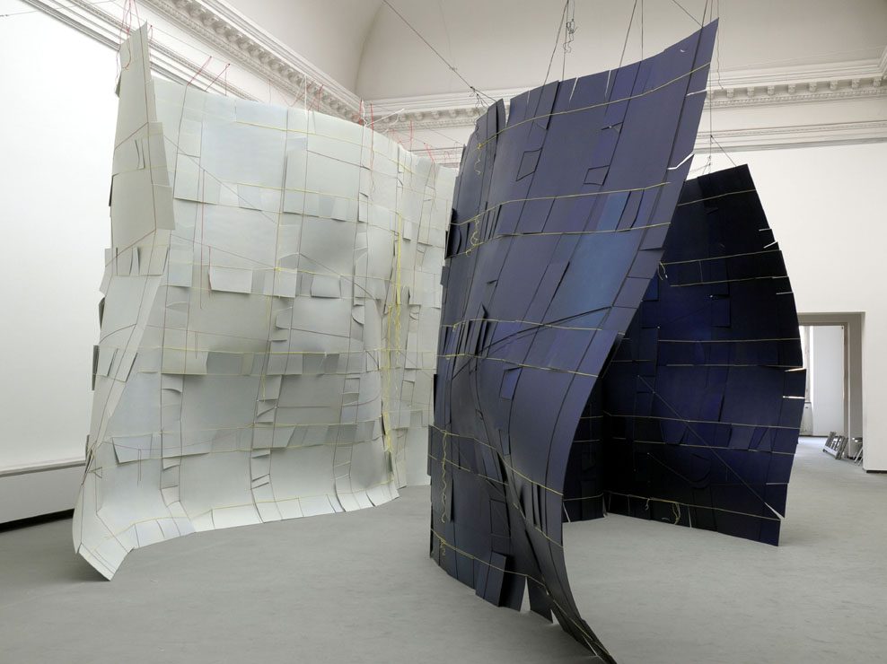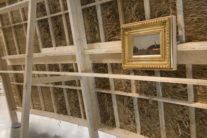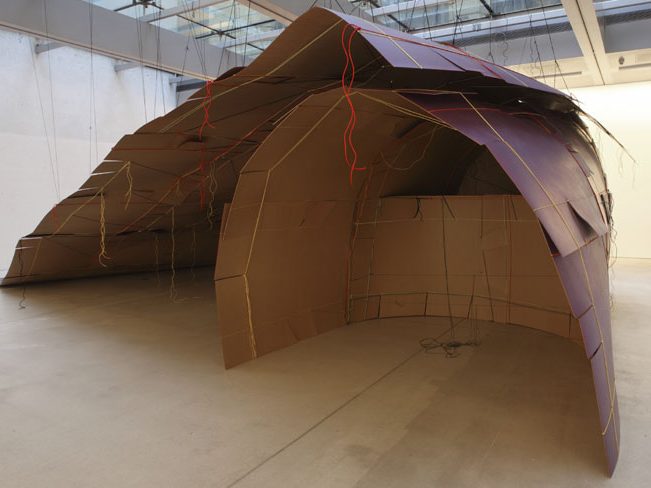 Stroh Wir, in Augenschein genommen, 2019 Wir, in Augenschein genommen, 2019; Stroh, Holz / Gemälde: Tina Blau “Szolnok”, 1873/74 Wir, in Augenschein genommen, 2019 Wir, in Augenschein genommen, 2019 / Gemälde: Johann Kniep “Ideale Landschaft”, 1806 Reet Pflanzenwerk / 2021 / Holz, Reet, Stahl Pflanzenwerk / 2021 Holz Housing in Amplitude, Cerro Castillo, Aysén, 2013, gemeinsam mit Sebastian Preece; Lenga, Stahlnägel; 420 x 400 x 650 cm Housing in Amplitude, 2014, gemeinsam mit Sebastian Preece; Installationsansicht Karton Investigation of Scattered Fields, 2006; Hartpappe, Farbe, Lack; 40 x 500 x 600 cm Haus, 2008; Hartpappe, Polyamidschnur; 250 x 180 x 135 cm Weiches Haus, 2005; Hartpappe, polyamidschnur; 450 x 800 x 500 cm das abseitige Freie, 2008; Hartpappe, Polyamidschnur, Lack; 400 x 1200 x 500 cm + 500 x 900 x 100 cm Unterschlupf, 2009 (Detail) Unterschlupf, 2009; Hartpappe, Polyamidschnur, Farbe, Lack; 235 x 680 x 950 cm Dome, 2008; Hartpappe, Polyamidschnur; 250 x 180 x 135 cm Domes, 2008; Detail Straßenbild mit Squatterwagen, 2004; Hartpappe, Weich-PVC, Polyamidschnur; 200 x 750 69. Straße Subwaystation, 2003, Detail Handel, 2003; Graupappe, weißer Karton; 660 x 770 cm billboard in between goods, 2002, Ahmedabad, 600 x 600 cm in between goods, 2002 Installation in Ausstellung: Setouchi Triennale 2025 3.10.-9.11.25 / Setouchi /Japan Sea Art Festival 2025 27.9.-2.11.25 / Dadaepo Beach u. a. Orte / Südkorea curated by 5.9.-22.11.25 / König Galerie / Wien Topography of an unusual reality 5.6.-1.7.25 / Galerie Knust Kunz / München Blickachsen 14 18.5.-5.10.25 / Kurpark / Bad Homburg Housing in Amplitude Onomichi 1.-3.11.24 / LLOVE HOUSE / Onomichi / Japan WAND – Eine partizipative Installation 27.6.–31.12.24 / Umweltbundesamt / Dessau 3 Häuser permanente Installation / Fraunhofer Institut für Bauphysik IBP / Bayern Zürich Art Prize 2024 30.5.-8.9.24 / Haus Konstruktiv / Zürich wir legten hände in das wasser 16.6.-8.9.24 / Altes Kurhaus / Bad Kösen