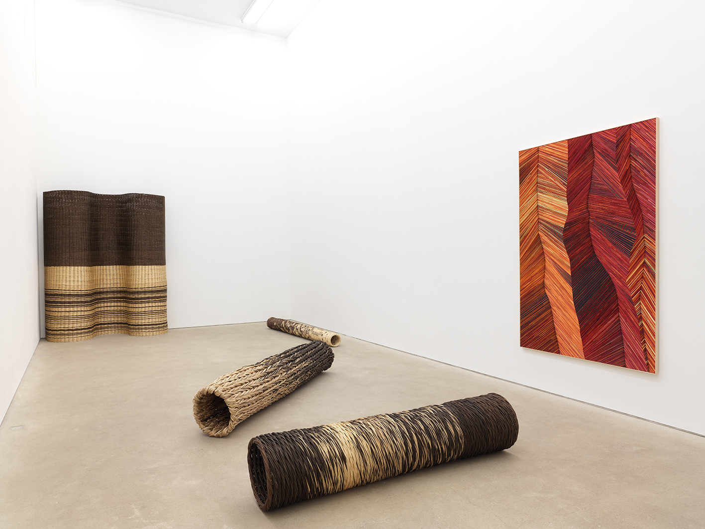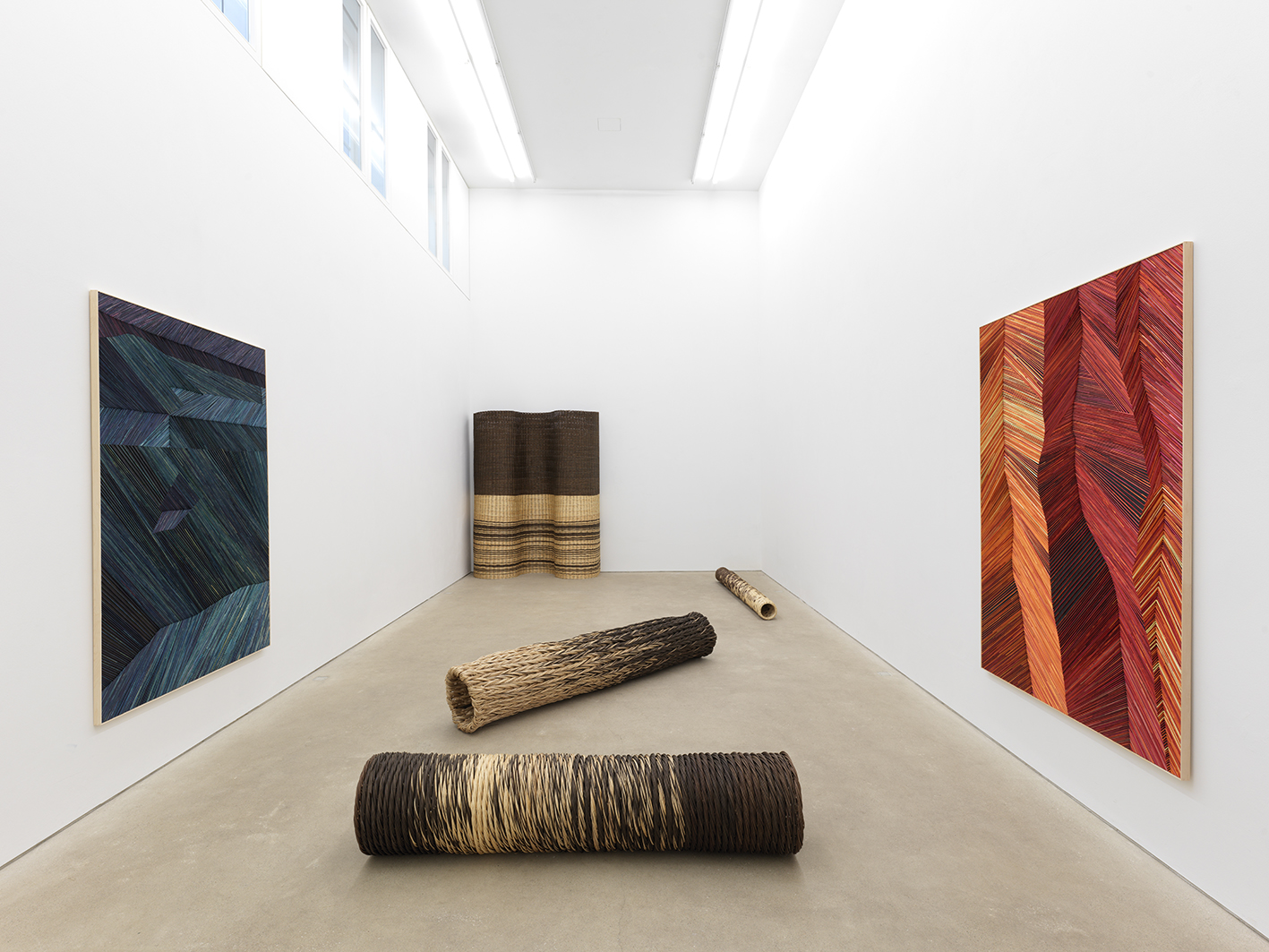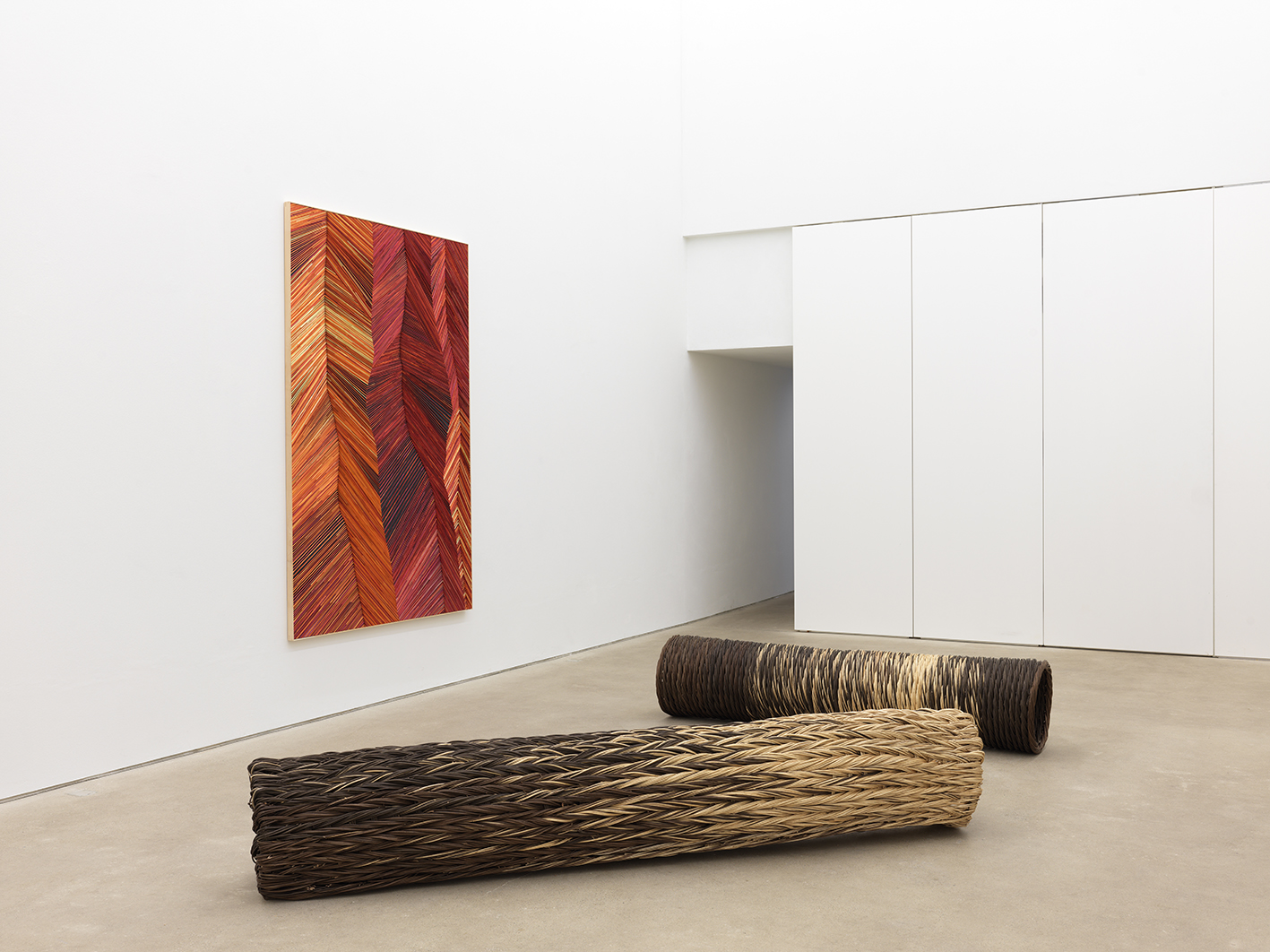 In various parts of the world, the artist’s interest in the relationship between rural spaces and urban concentrations, between the supposed periphery and the centers, led to a wide fan of pictorial works and objects, but whose central aims clearly cohere. A hay picture created with people from the Lusatia region, a picture made of Brandenburg straw, or a picture created from cactus fibers by northern Argentinian weavers are initially diverse things, but in a broader sense, all of them delve into the question of the possibilities of a valid abstraction of and at the same time actualization of the relationship between material and landscape. Holzapfel explores this thematic field through recourse to traditional handicraft techniques, but without nostalgic dressing up and at the height of current theoretical discourse; his work thereby proves its relevance, also concerning the social and ecological dimension of the question of the role and significance of rural spaces in our immediate life reality. The complexity and timeless beauty of Holzapfel’s pictorial works and sculptures often astonishes us viewers, testifying to his rank as one of the rare contemporary artists who know how to convincingly connect the form and content of their work.