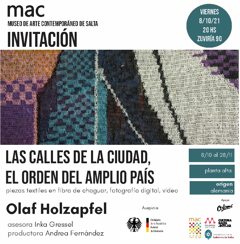 El artista alemán Olaf Holzapfel presenta una serie de obras en las que vinculan su interés por los textiles originarios del norte argentino y su dedicación a la abstracción, desarrollando prácticas colaborativas que unen saberes ancestrales profundamente ligados a la naturaleza con la vida urbana y el arte contemporáneo.