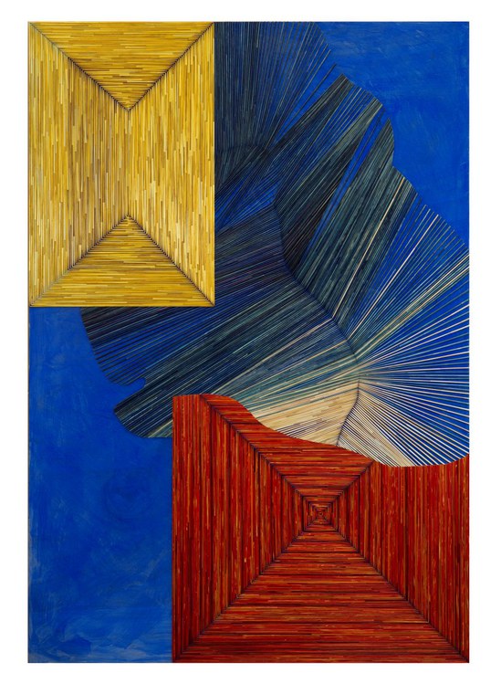 Für das Pentagon-West hat Holzapfel eine Präsentation konzipiert, die Acrylglas-Faltungen, Digital-, Heu- und Strohbilder, Gemälde sowie eine fotografische Serie zu einem Japan-Aufenthalt zusammenbringt. Unter Einbeziehung von Modellen aus der Mathematischen Sammlung und Herbarbelegen aus der Sammlung des Botanischen Garten der Technischen Universität Dresden sowie Werken des Installations- und Konzeptkünstlers Franz Erhard Walther (*1939 in Fulda, lebt und arbeitet in Fulda) und der Glaskünstlerin Veronika Beckh (*1969 Forchheim, lebt in Berlin) sind drei künstlerische Tableaus entstanden. Unter den Überschriften „Pflanzen“, „Geometrische-Mathematische Formen beziehungsweise Formen mit Gravitation“ sowie „Information und Raumzeichnung“ setzen diese sich mit elementaren Aspekten von Weltbildung auseinander. Zu den behandelten Themen gehören die Herausbildung der ‚digitalen Welt‘ und die gleichzeitige Infragestellung von Produktions- und Lebenspraxen vor dem Hintergrund der Klimakrise und gesellschaftspolitischer Neuordnungen.