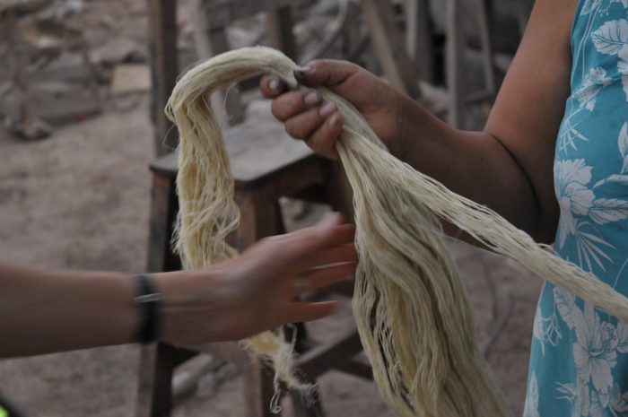 Die Installation wurde gemeinsam mit Frauen der Wichis angefertigt – die in Nordargentinien, primär im nordwestlichen Teil der Provinz Chaco und in den Provinzen Formosa, Salta und Jujuy, sowie in der Provinz Gran Chaco in Bolivien leben: Ihre ehemals nomadisch Lebensform, hauptsächlich vom Jagen und Sammeln lebend, hat sie für die Gesetze und Kräfte der Landschaft sensibilisiert. Die direkte Beobachtung ihrer Umgebung und ihrer individuellen Nutzung, der vorsichtige Umgang mit der Natur und ihren Ressourcen, trifft eine maßgebliche Aussage über mögliche Formen der Nachhaltigkeit für unsere Zeit. Denn die Wichis mussten in Kooperation mit ihrer Umgebung leben, sie also als Partner erhalten, was für die heutige Welt von Bedeutung ist. Immer noch werden von ihnen verbreitet Materialien verwendet, die man vor Ort findet, z. B. in der Medizin, im Kunsthandwerk oder in der Konstruktion von Adobehäusern.