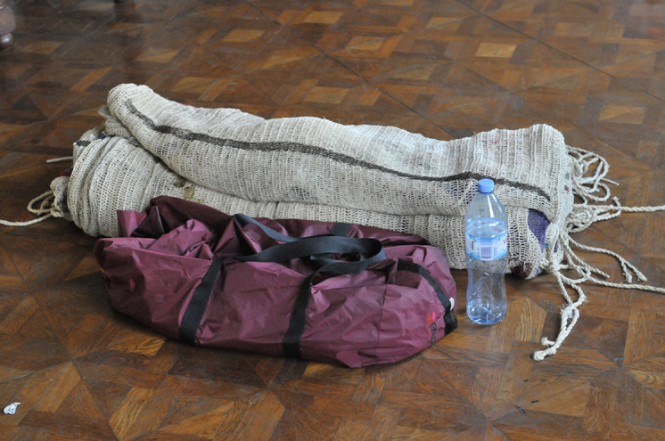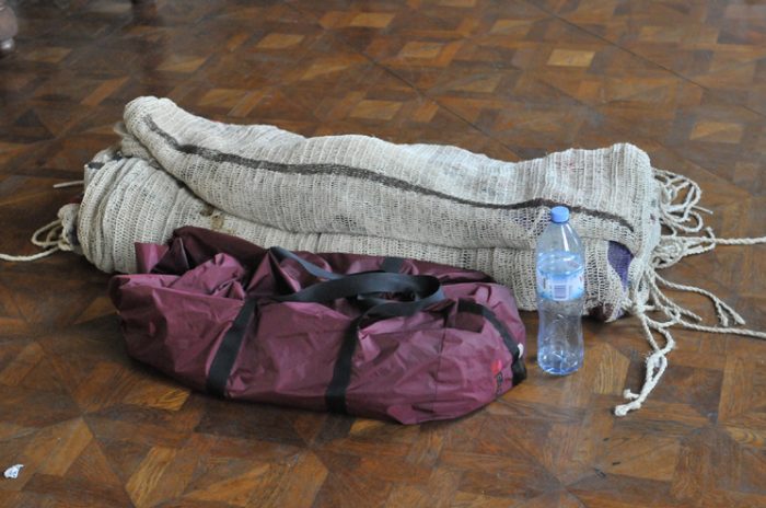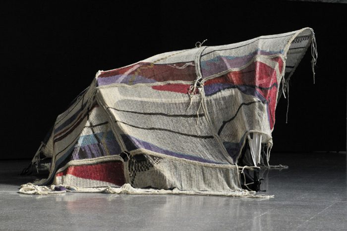 Die Form der Installation, ein zusammenfaltbares, temporäres Zelt, das wiederholt auf- und abgebaut werden und mit der Ausstellung wandern kann, erinnert an das Nomadische der Indios. Ein Leben das sie heute nicht mehr leben können weil ihr Lebensraum beschränkt wurde. Sie halten aber an ihrem Wissen der Landschaft fest. Im Gegenzug begreift die moderne technisierte Welt sich immer mehr als nomadisch.